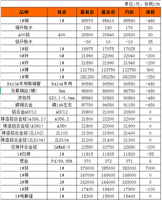 长江有色金属现货10月15日行情