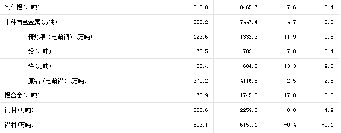 国家统计局:11月份十种有色金属产量699万吨,同比增长4.7%