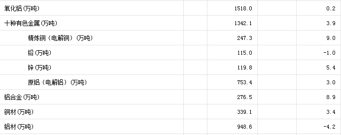 国家统计局:1-2月份十种有色金属产量1342万吨,同比增长3.9%