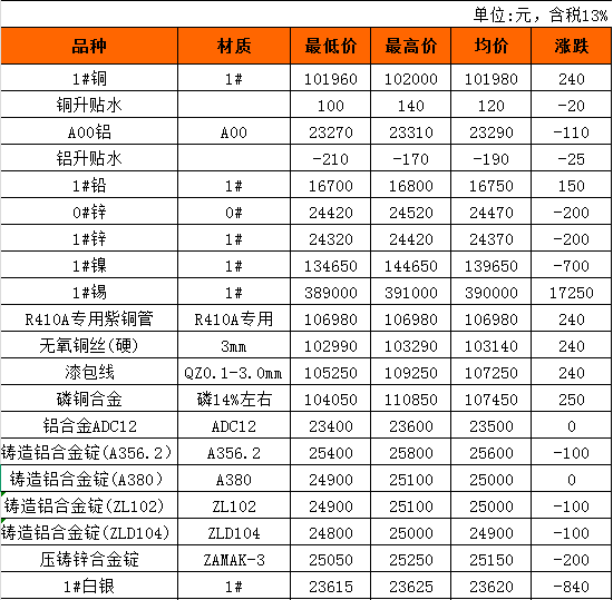 长江有色金属现货2月10日行情