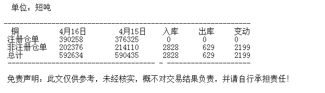 4月16日 COMEX铜库存统计