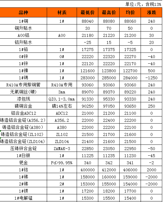 长江有色金属现货10月30日行情