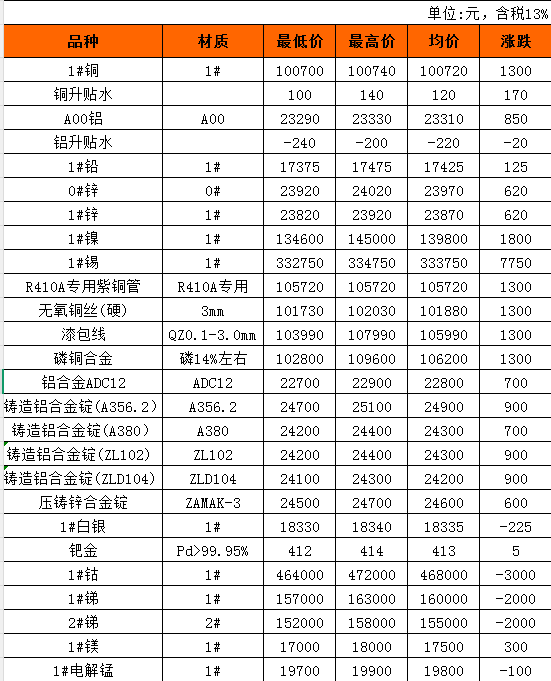 长江有色金属现货1月5日行情
