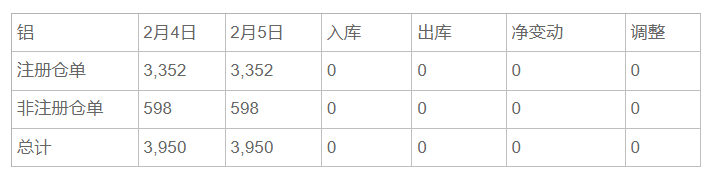 2月5日 COMEX铝库存统计