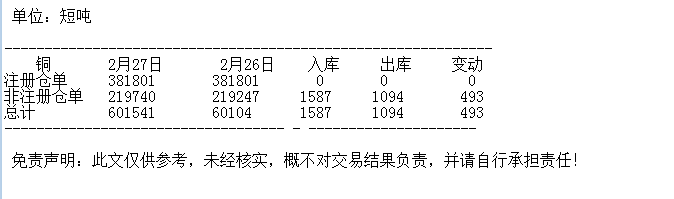 2月27日 COMEX铜库存统计