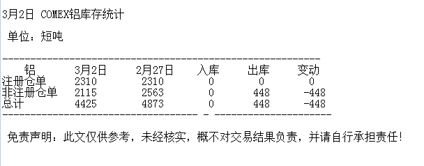 3月2日 COMEX铝库存统计