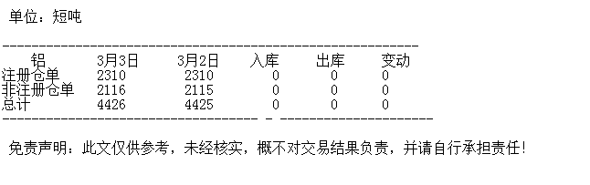 3月3日 COMEX铝库存统计