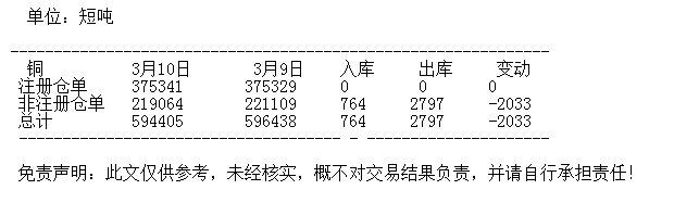 3月10日 COMEX铜库存统计