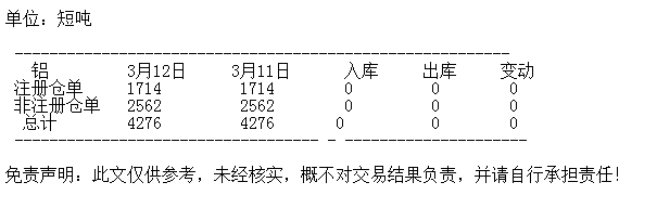 3月12日 COMEX铝库存统计
