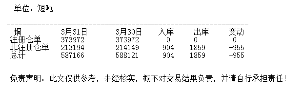3月31日 COMEX铜库存统计