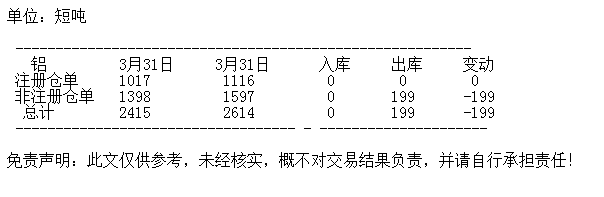 3月31日 COMEX铝库存统计