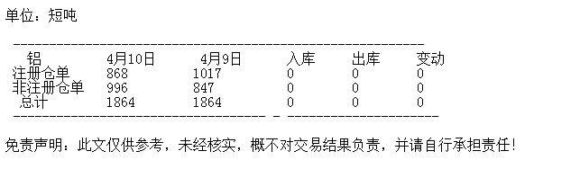 4月10日 COMEX铝库存统计