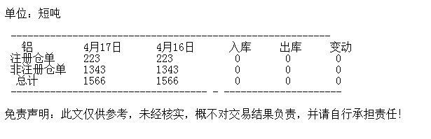 4月17日 COMEX铝库存统计