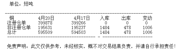 4月20日 COMEX铜库存统计