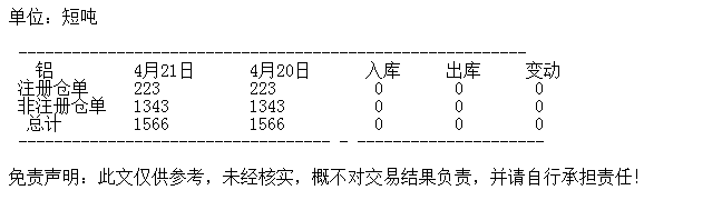 4月21日 COMEX铝库存统计